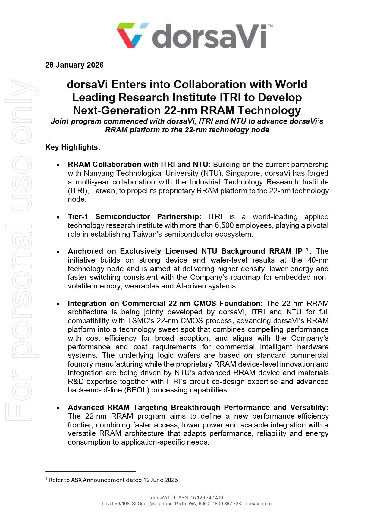 - Tier-1 semiconductor partnership with ITRI strengthens technical credibility and commercial pathway