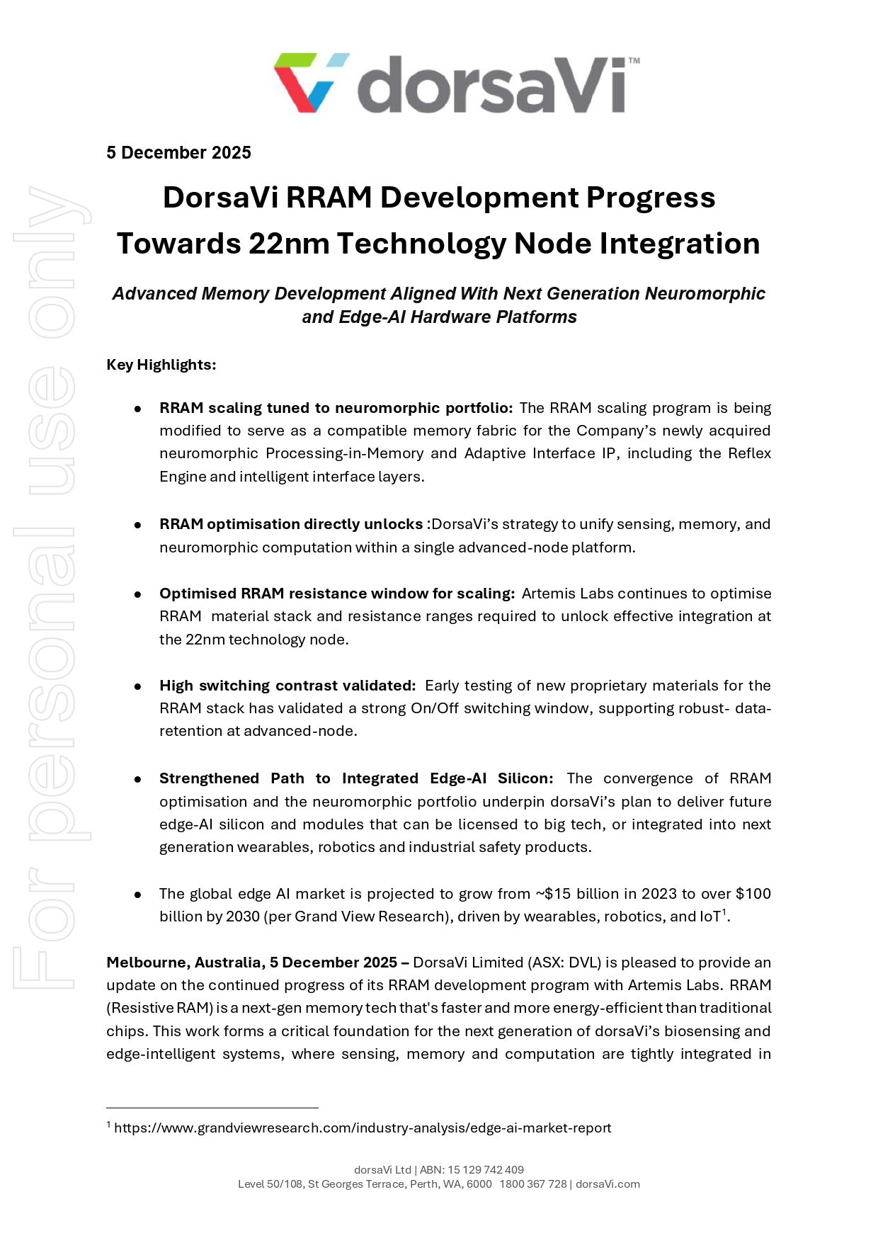 - RRAM scaling now tuned to align with DVL’s neuromorphic Processing-in-Memory & Adaptive Interface IP
