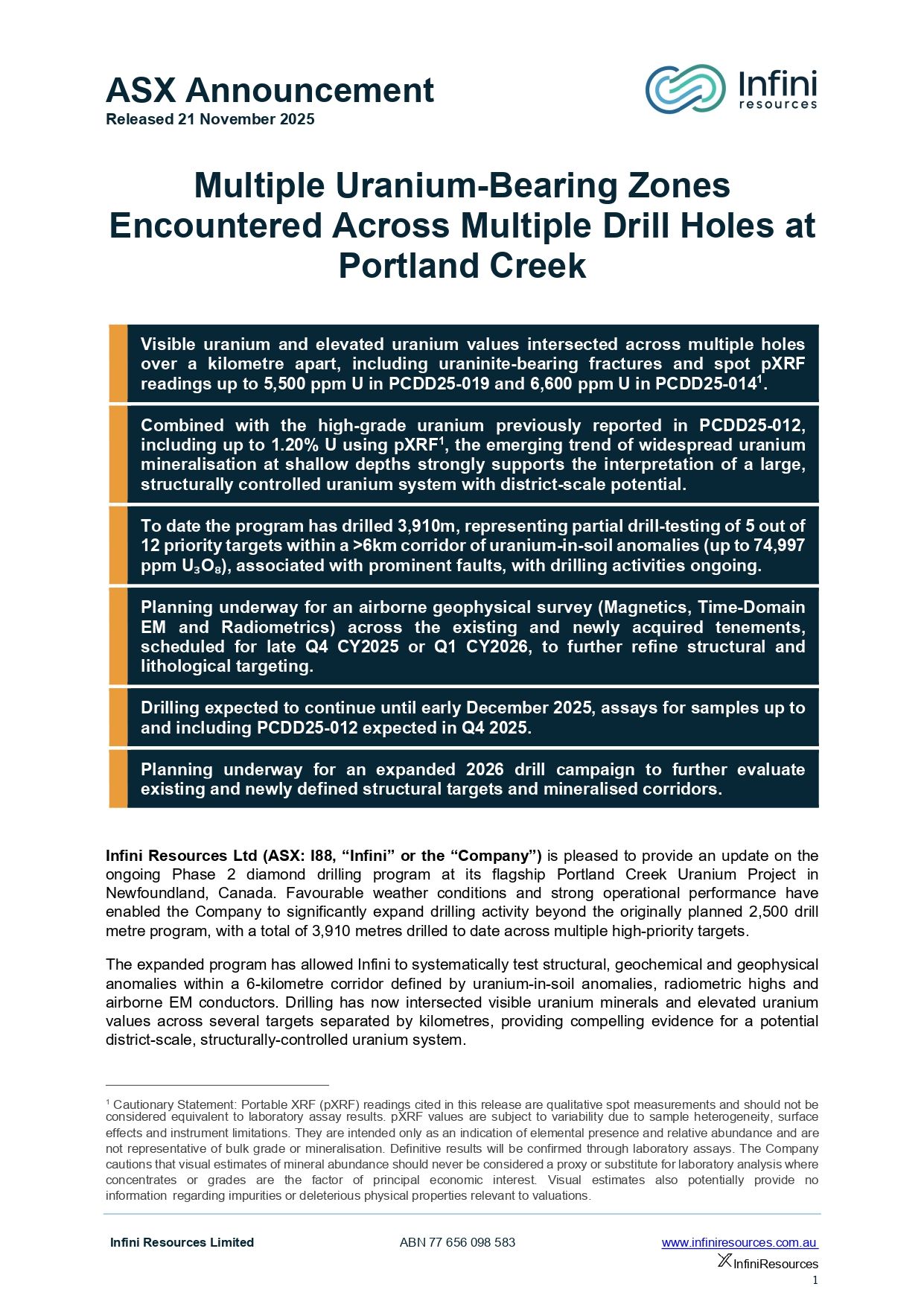 • pXRF up to 5,500 ppm U (PCDD25-019) & 6,600 ppm U (PCDD25-014)