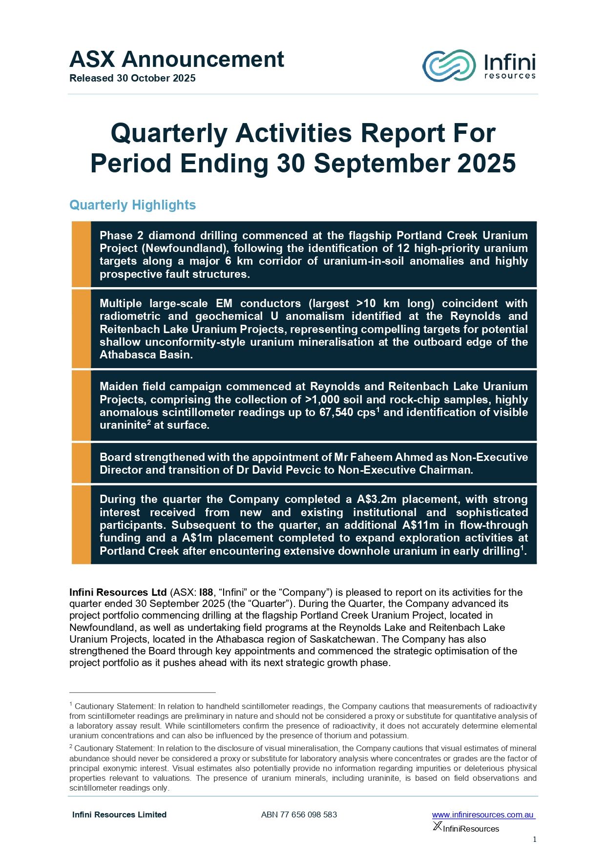 • Phase 2 drilling underway at Portland Creek, targeting 12 high-priority uranium zones.