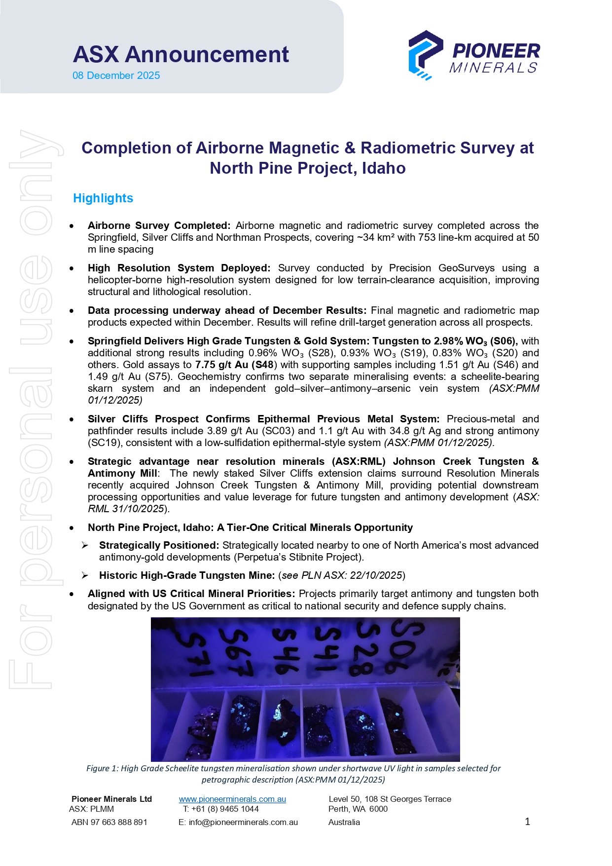 • North Pine remains a Tier-1 critical minerals opportunity, aligned with U.S. antimony & tungsten priorities.